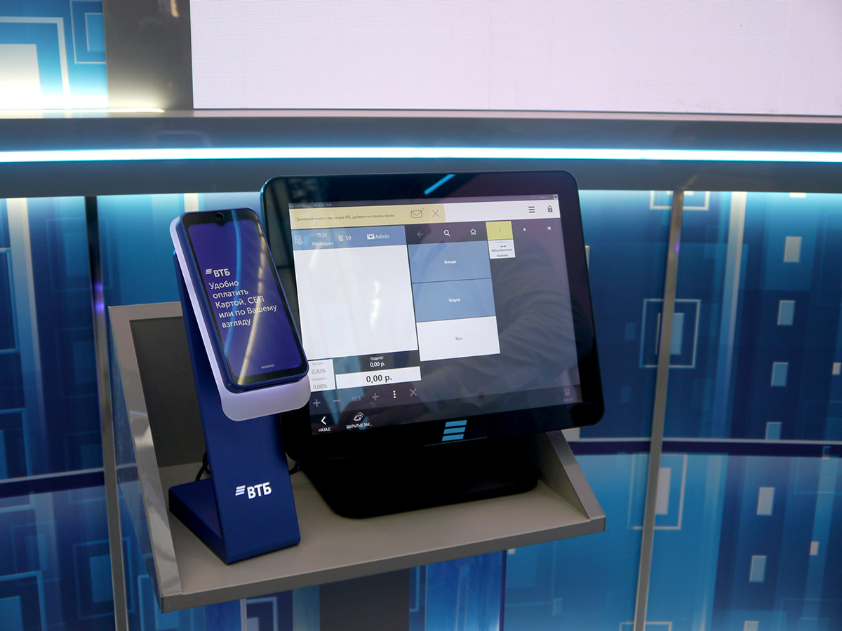 - На стенде Банка ВТБ, было использовано интегрированное решение, в основе которого был использован ПК с кассовым программным обеспечение, соединенный с пин-падом, на котором происходит определение возраста по биометрии, и последующая оплата через био-эквайринг.